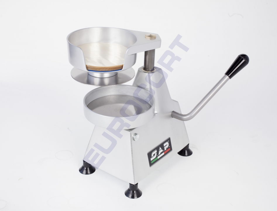 - Construida en aluminio anodizado y Acero inoxidable. - Formato Hamburguesa redondo Ø 150 mm. - Dimensiones totales A: 310 / B: 250 / C: 240 mm. - Dimensiones base de apoyo: 220 x 170 mm. - Peso Neto: 5 Kg.